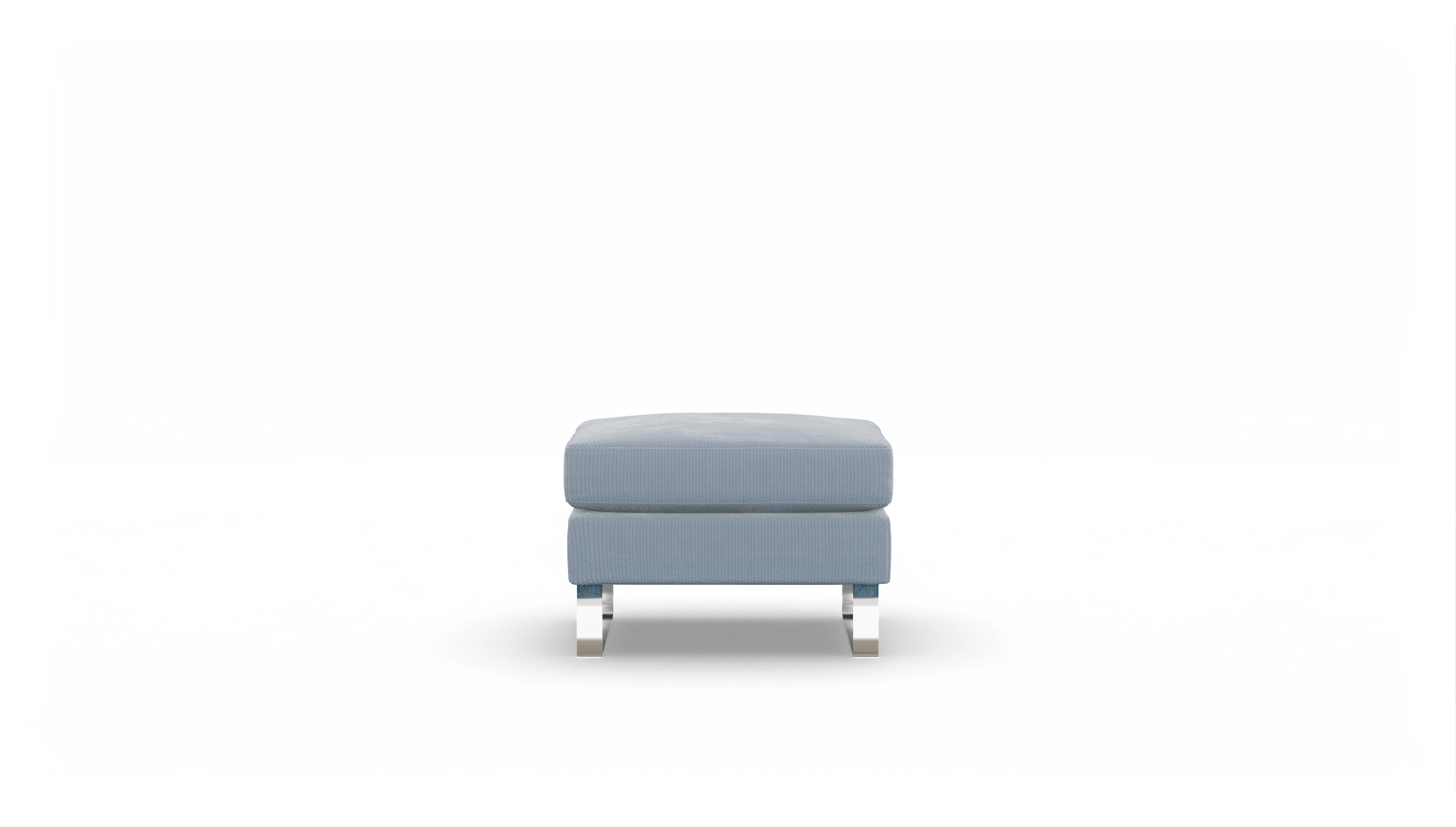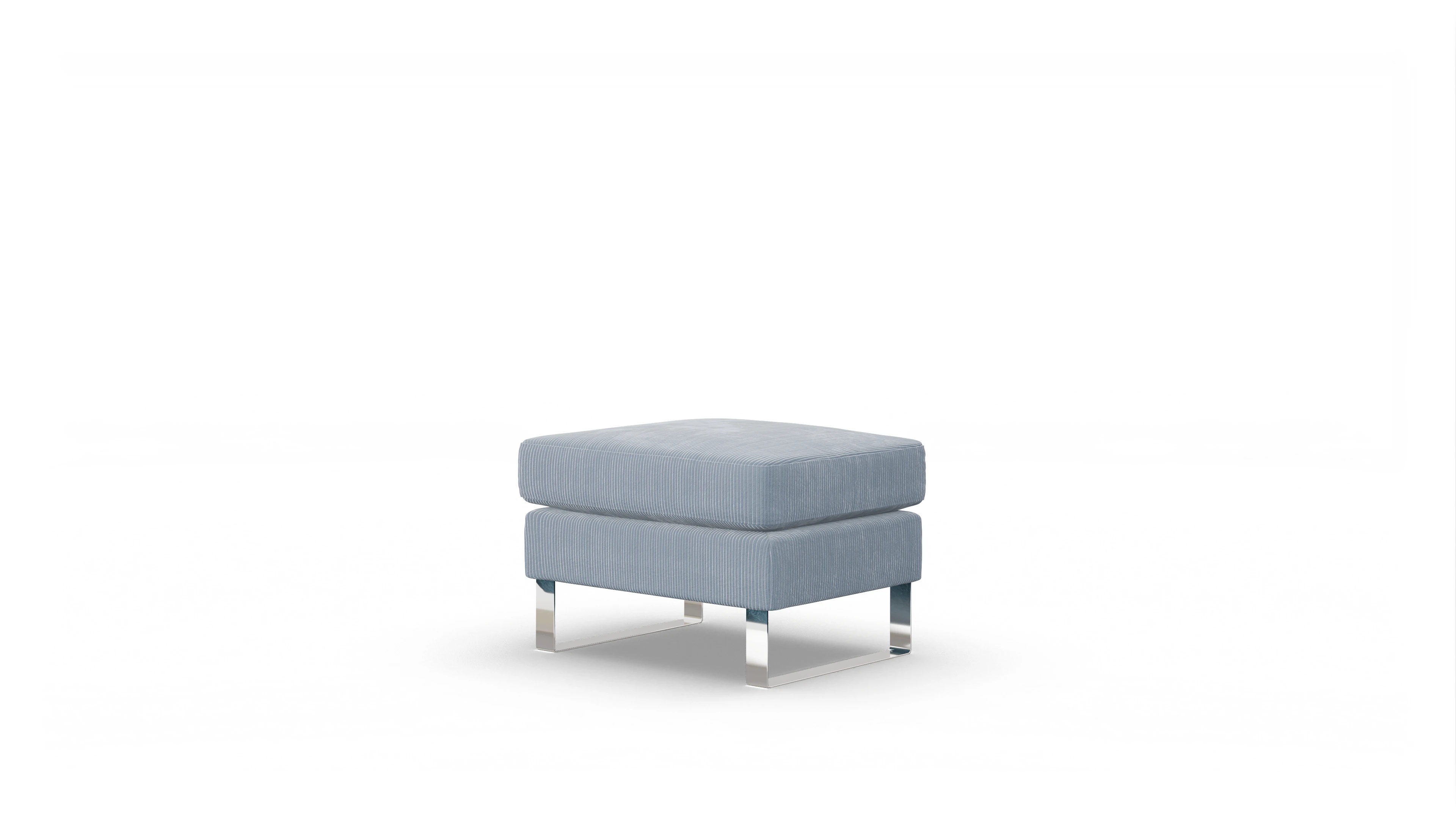 Der Stoffhocker Cespon ist ein zeitloser Klassiker und steht auf verchromten Metallkufen. Er wirkt dadurch auch in kleinen Räumen nicht zu massiv.