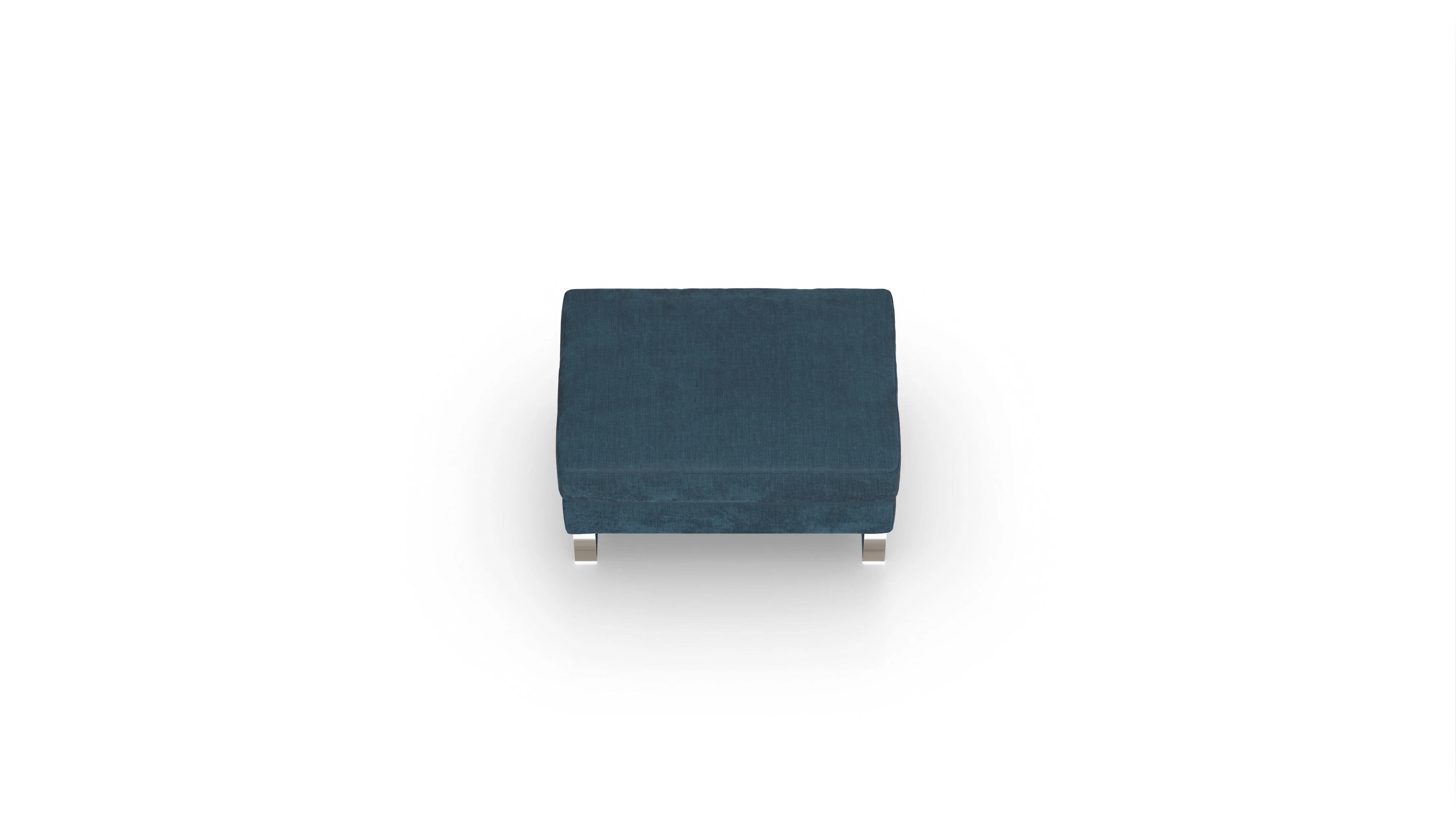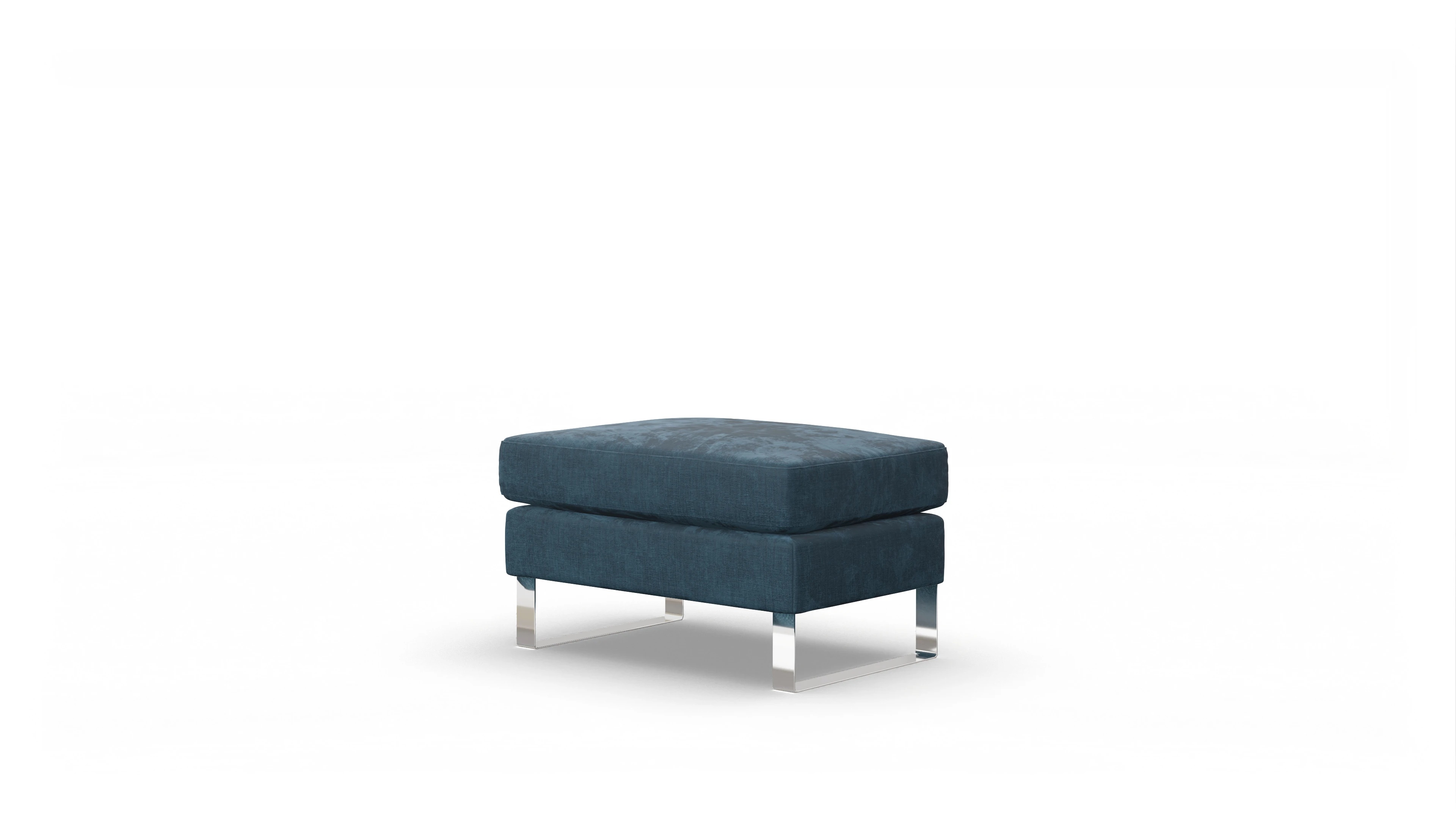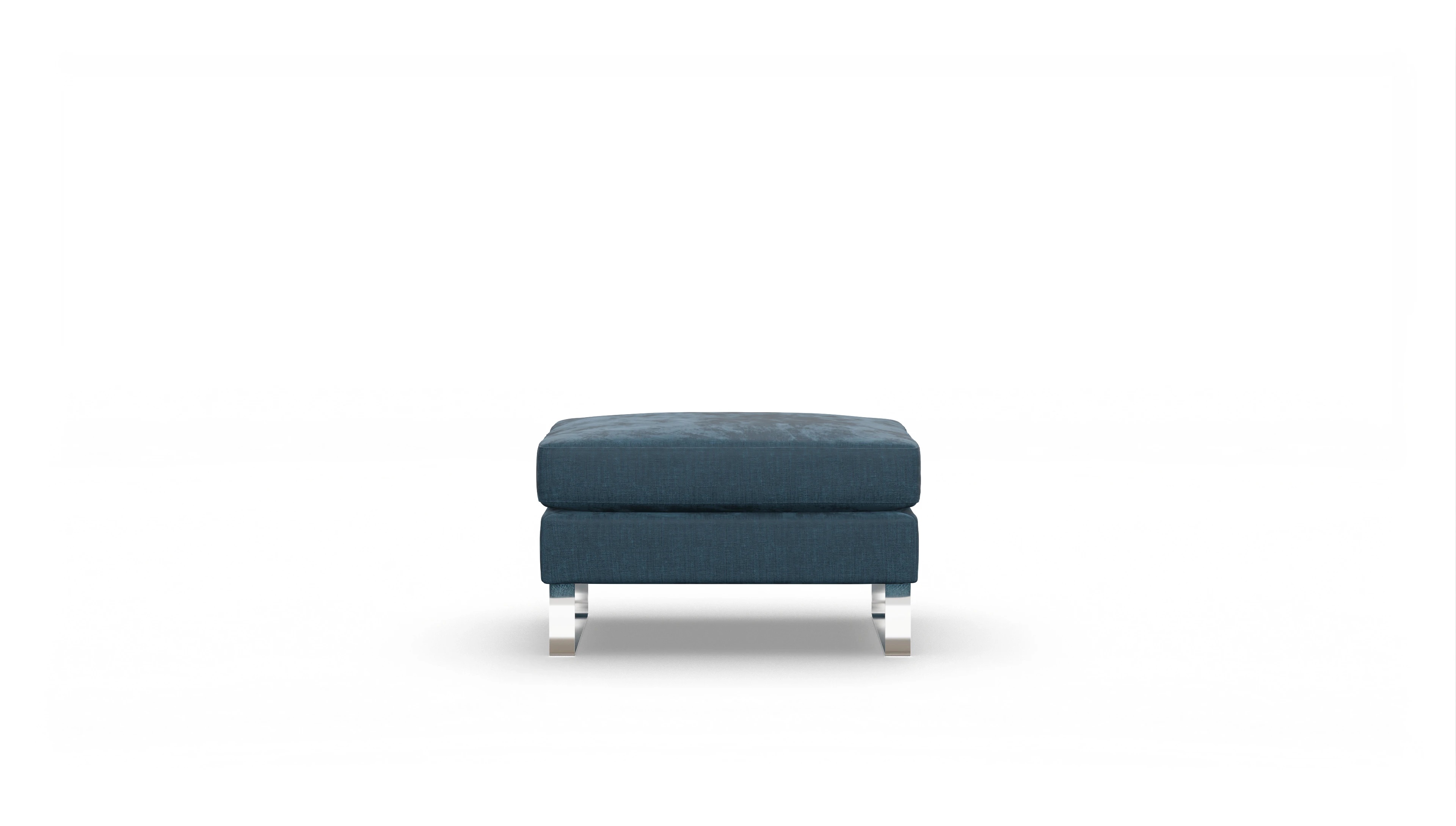 Der Stoffhocker Cespon ist ein zeitloser Klassiker und steht auf verchromten Metallkufen. Er wirkt dadurch auch in kleinen Räumen nicht zu massiv.