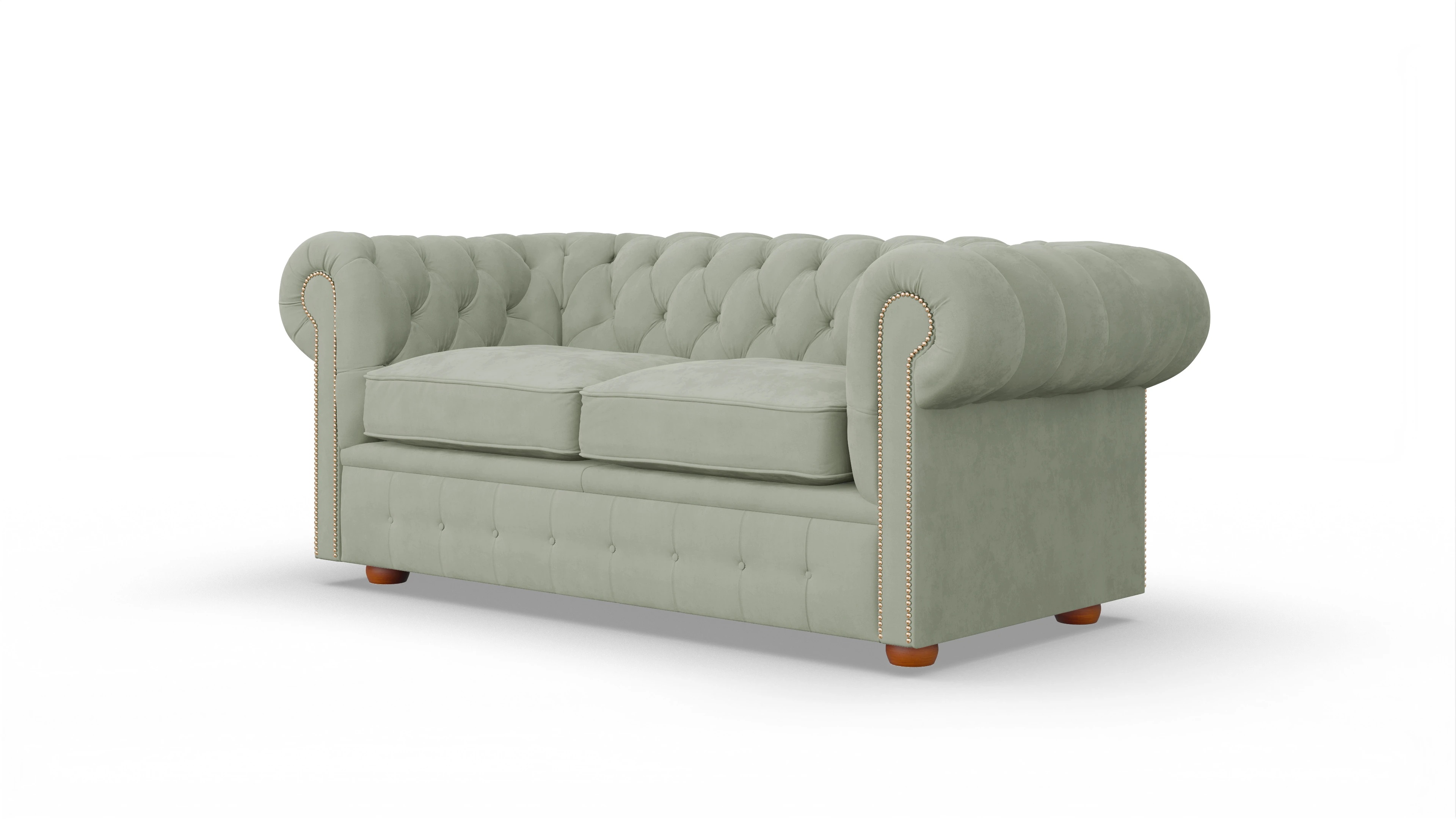Bezug Royal Velvet sage green / Nägel Brass / Füße Antique Pine
