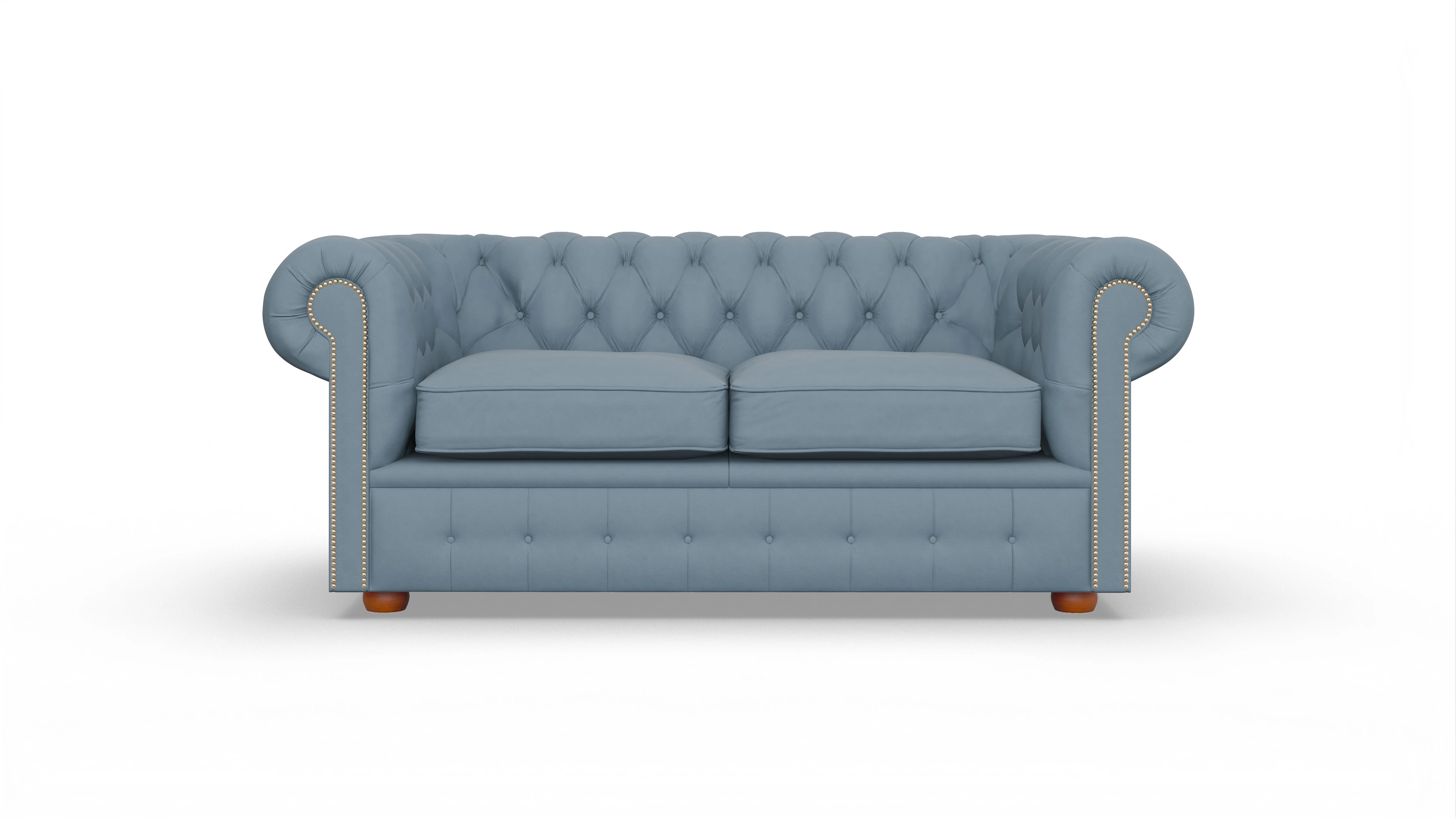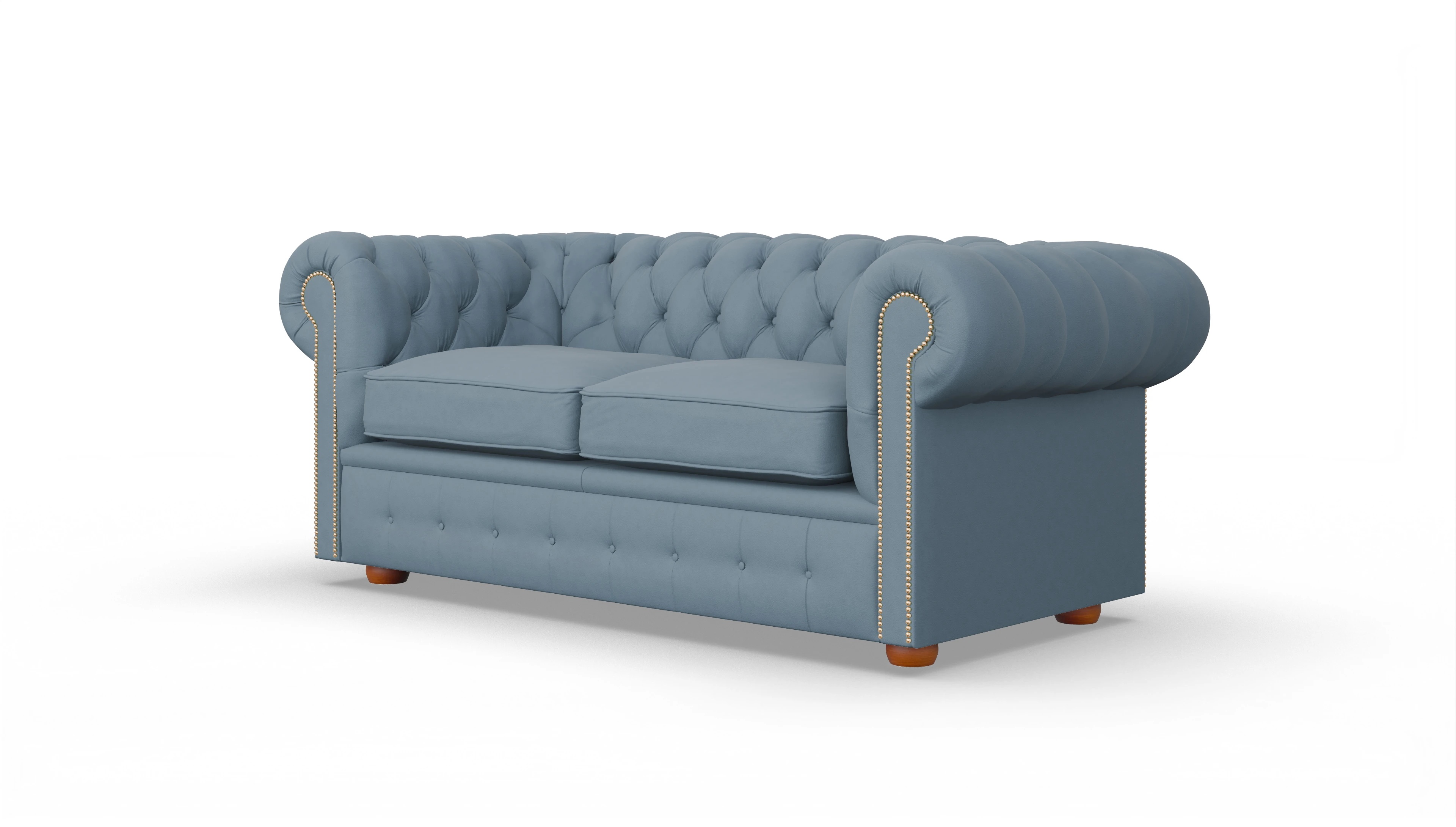 Die geraden Arme und die Rückenlehne sind vollständig gepolstert. Auf diese Weise sind maximaler Komfort und jahrzehntelange Formbeständigkeit garantiert. Liebevolle Details, wie die von Hand genagelten Nägel und die auf Hochglanz polierten Holzfüße machen dieses stilvolle Chesterfield Sofa zu einem unserer Lieblingsstücke. Als ideale Ergänzung empfehlen wir Ihnen den Clubsessel "Brighton".