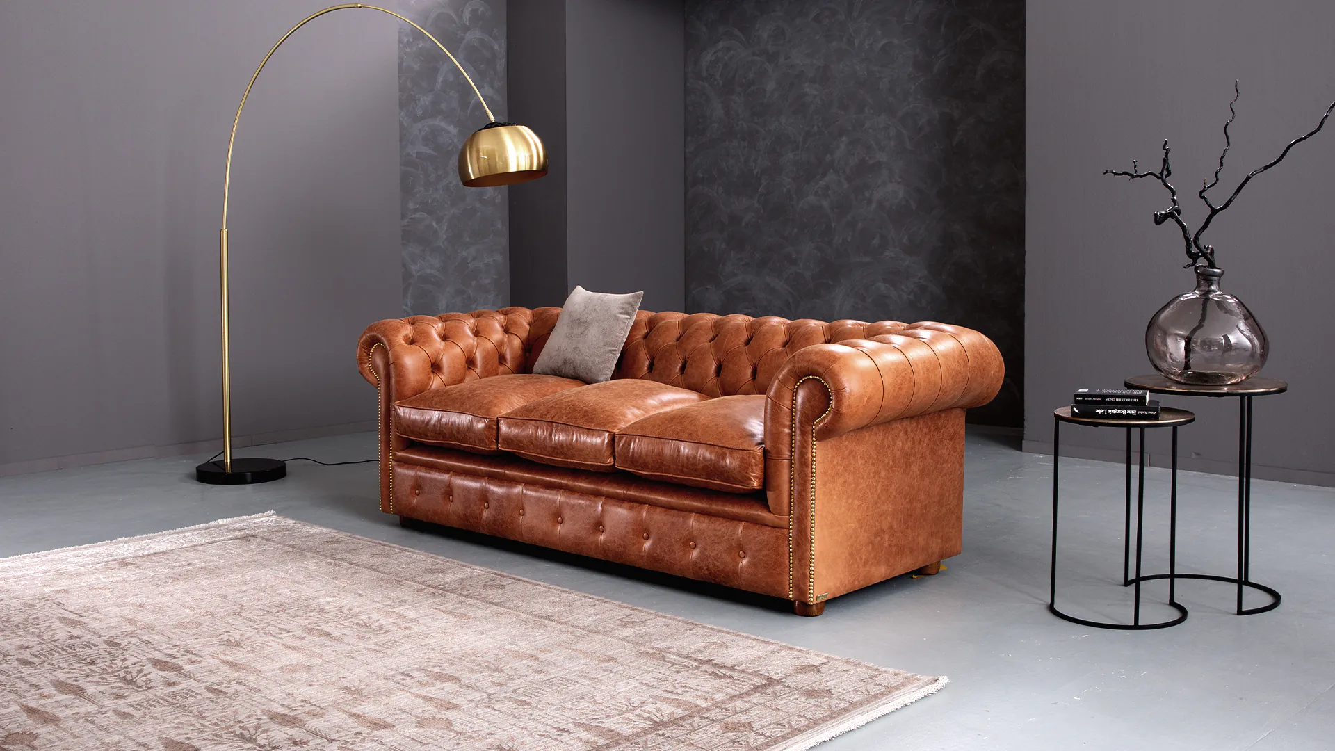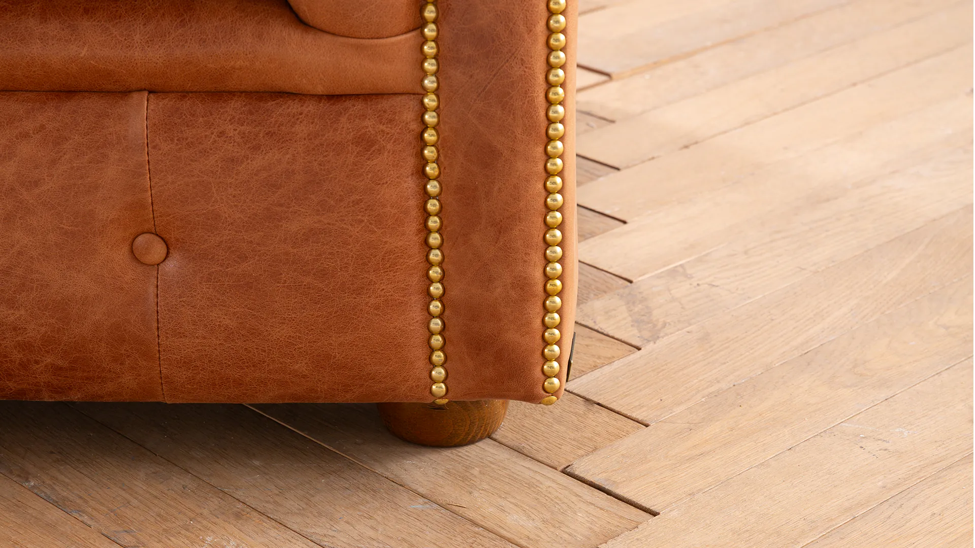 Die geraden Arme und die Rückenlehne sind vollständig gepolstert. Auf diese Weise sind maximaler Komfort und jahrzehntelange Formbeständigkeit garantiert. Liebevolle Details, wie die von Hand genagelten Nägel und die auf Hochglanz polierten Holzfüße machen dieses stilvolle Chesterfield Sofa zu einem unserer Lieblingsstücke. Als ideale Ergänzung empfehlen wir Ihnen den Clubsessel "Brighton".