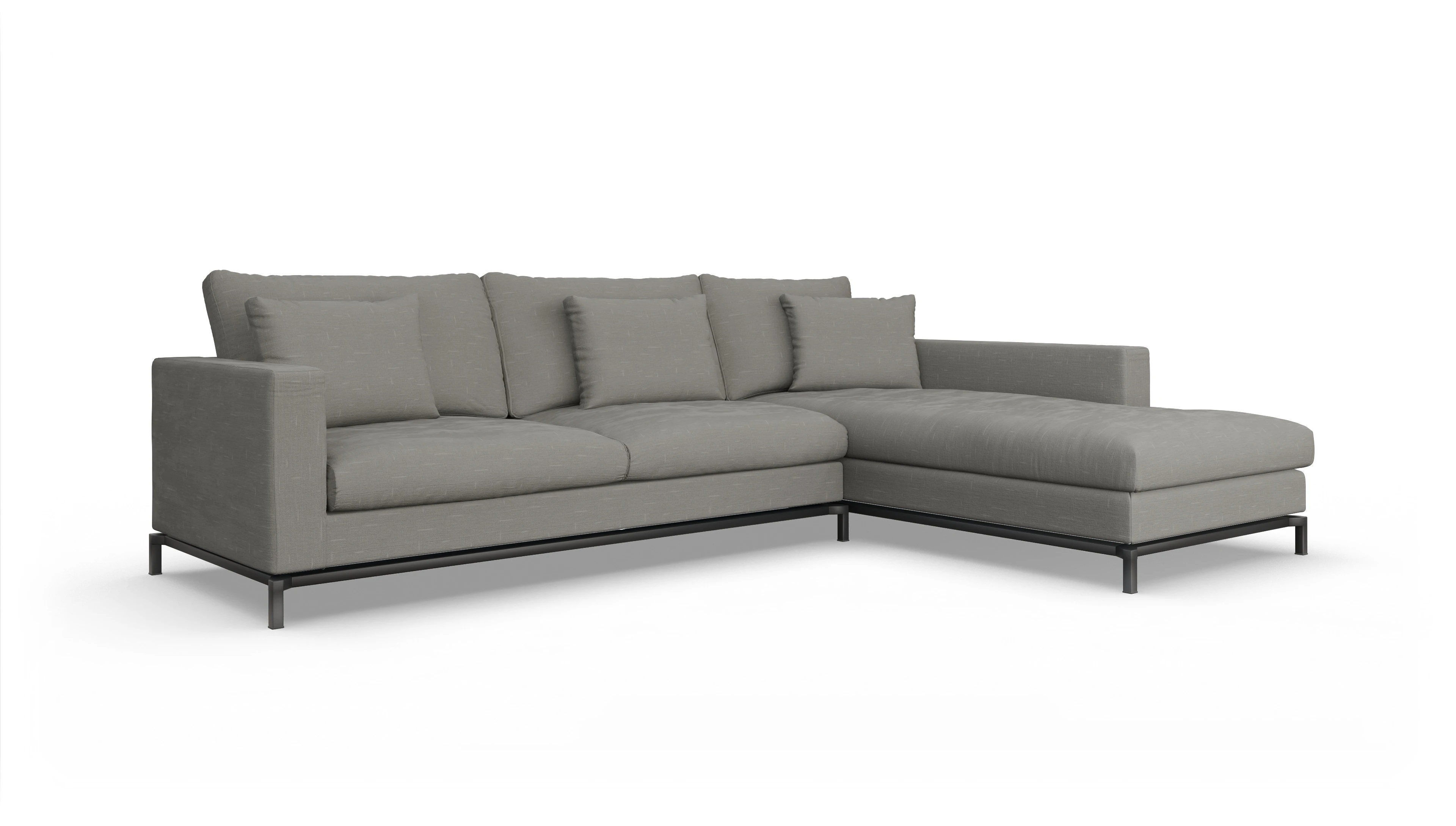 Die Design-Couch Fenice besticht durch ein klares, aber nicht zu strenges Design. Durch die losen Rückenkissen wird die geradlinige Form unterbrochen. Zusätzlich wird der "luftige" Eindruck durch den anthrazitfarbenen Stahlsockel unterstützt.