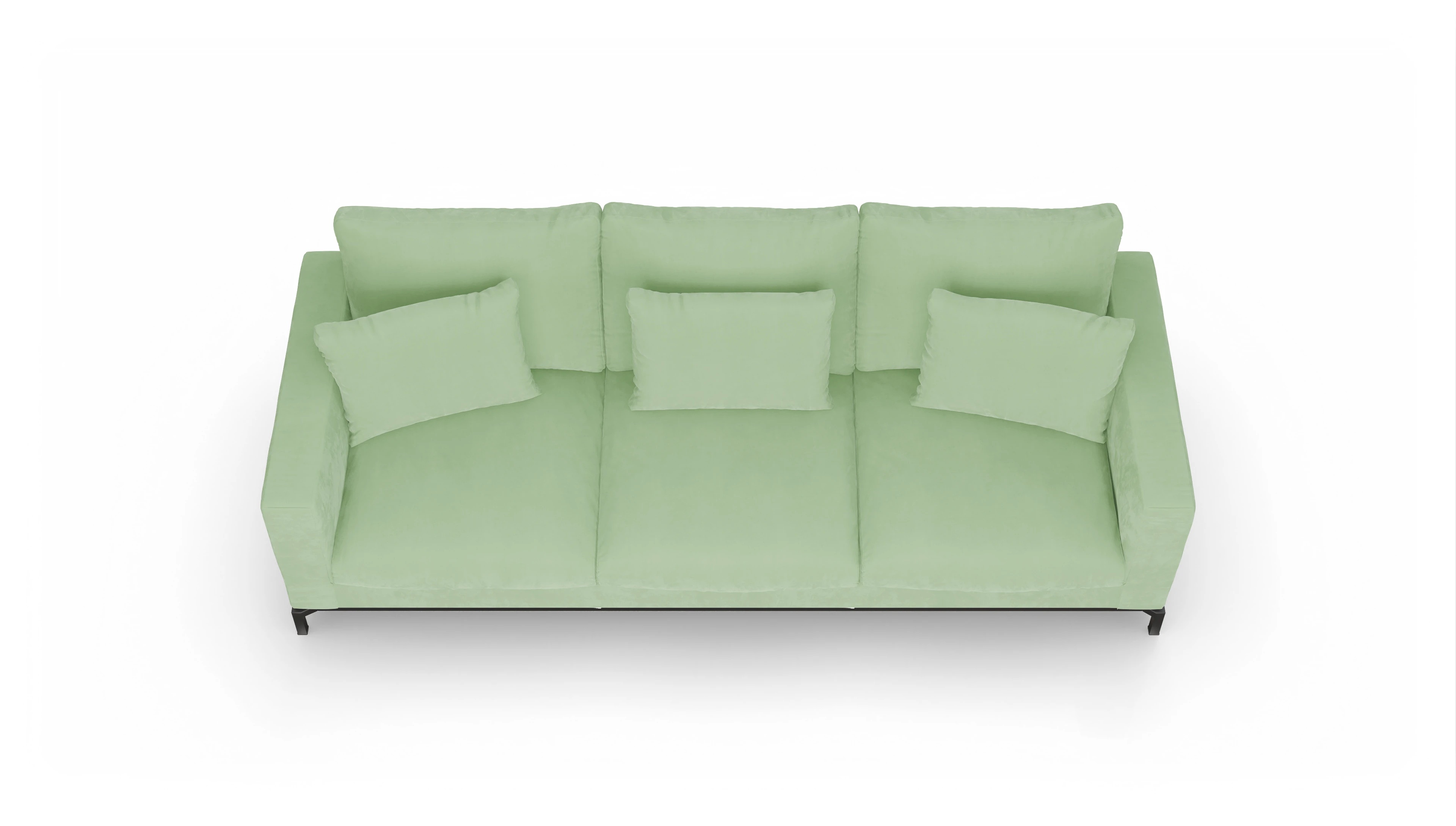 Die Design-Couch Fenice besticht durch ein klares, aber nicht zu strenges Design. Durch die losen Rückenkissen wird die geradlinige Form unterbrochen. Zusätzlich wird der "luftige" Eindruck durch den anthrazitfarbenen Stahlsockel unterstützt.