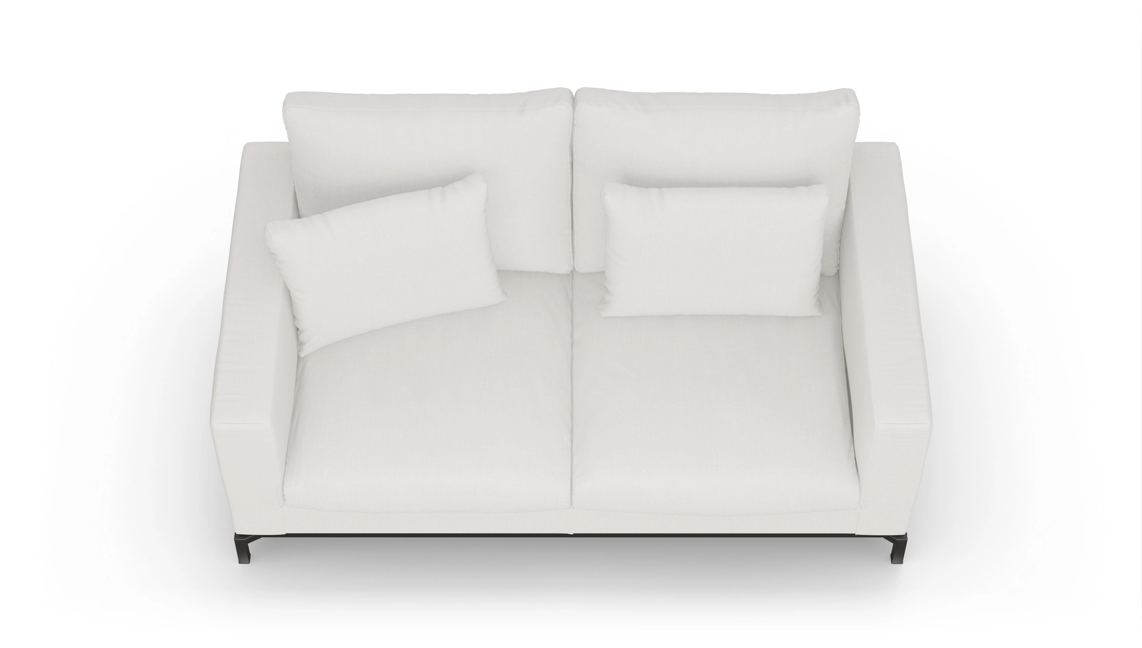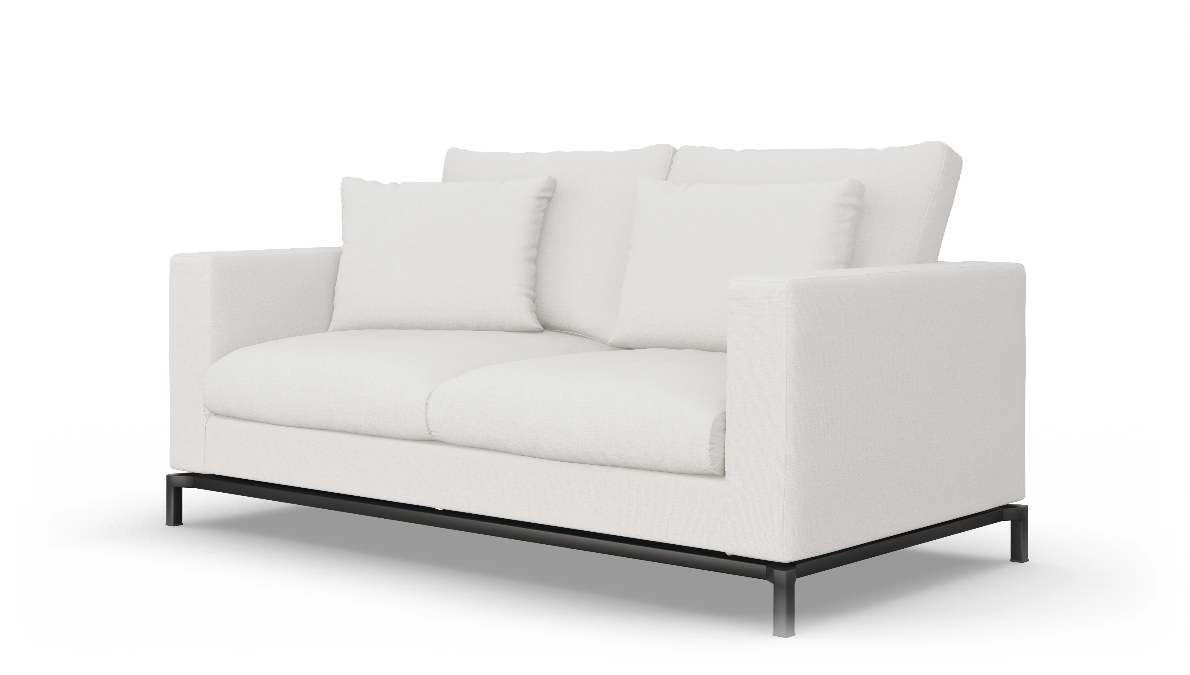 Die Design-Couch Fenice besticht durch ein klares, aber nicht zu strenges Design. Durch die losen Rückenkissen wird die geradlinige Form unterbrochen. Zusätzlich wird der "luftige" Eindruck durch den anthrazitfarbenen Stahlsockel unterstützt.
