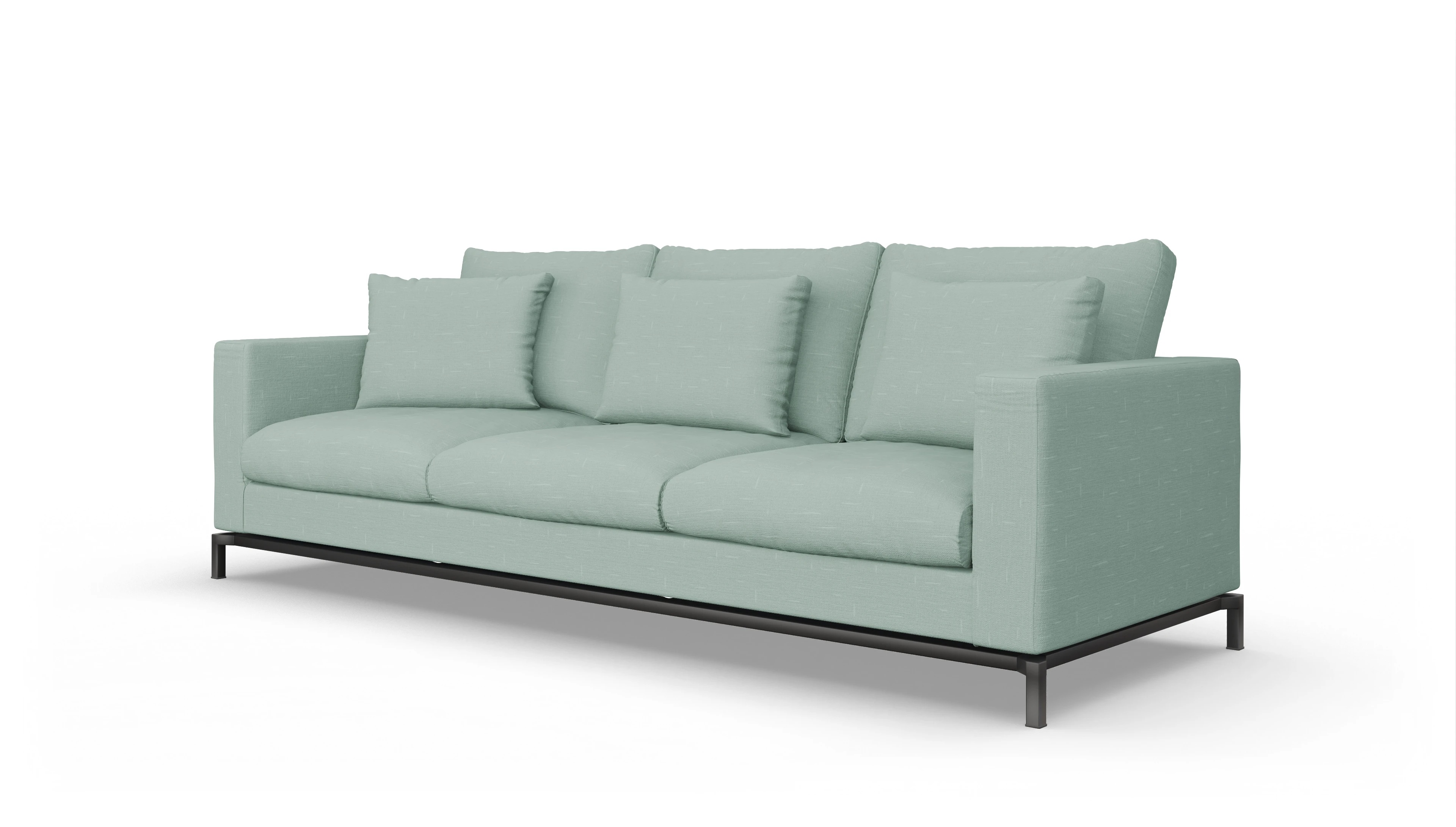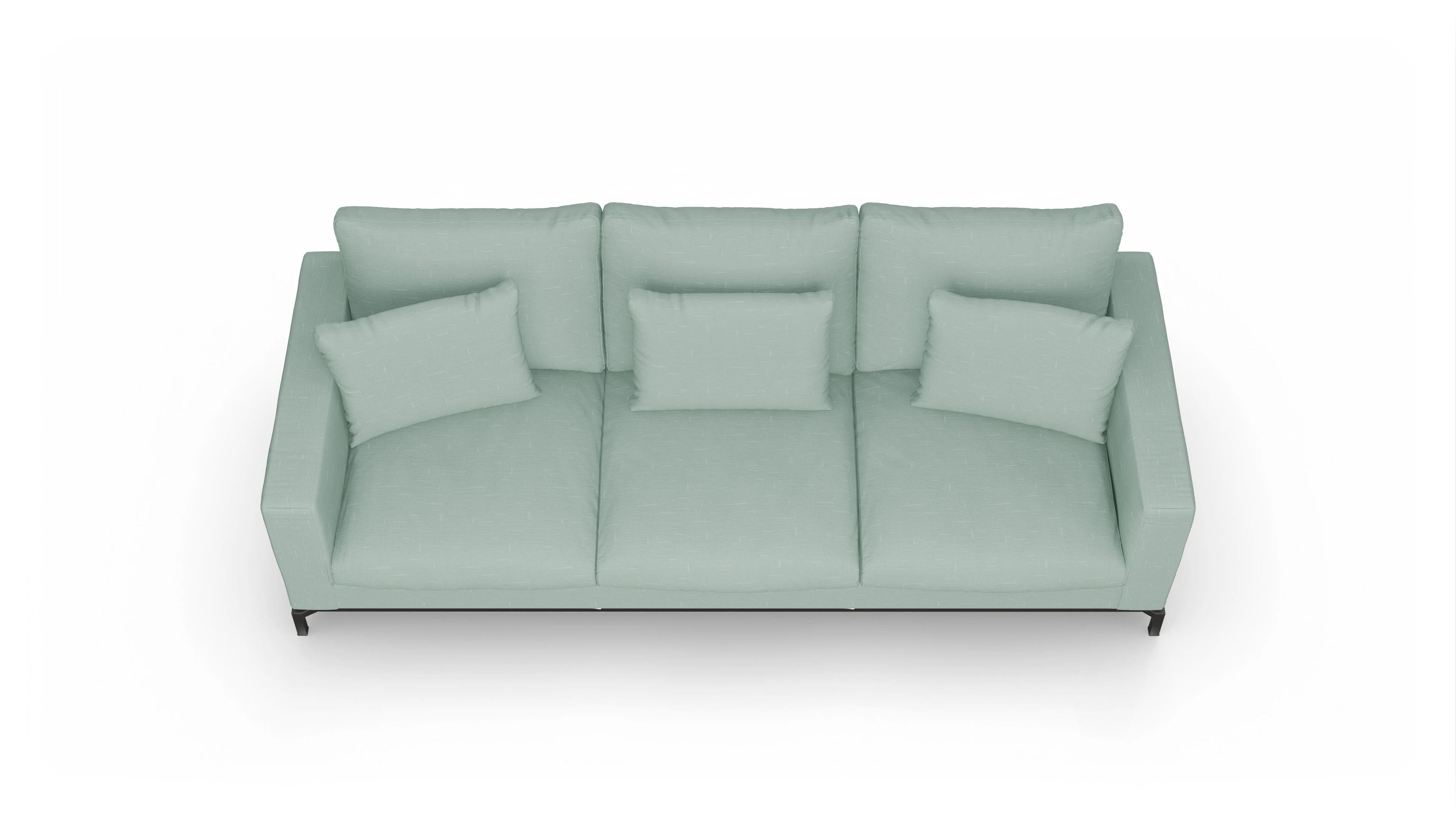 Die Design-Couch Fenice besticht durch ein klares, aber nicht zu strenges Design. Durch die losen Rückenkissen wird die geradlinige Form unterbrochen. Zusätzlich wird der "luftige" Eindruck durch den anthrazitfarbenen Stahlsockel unterstützt.
