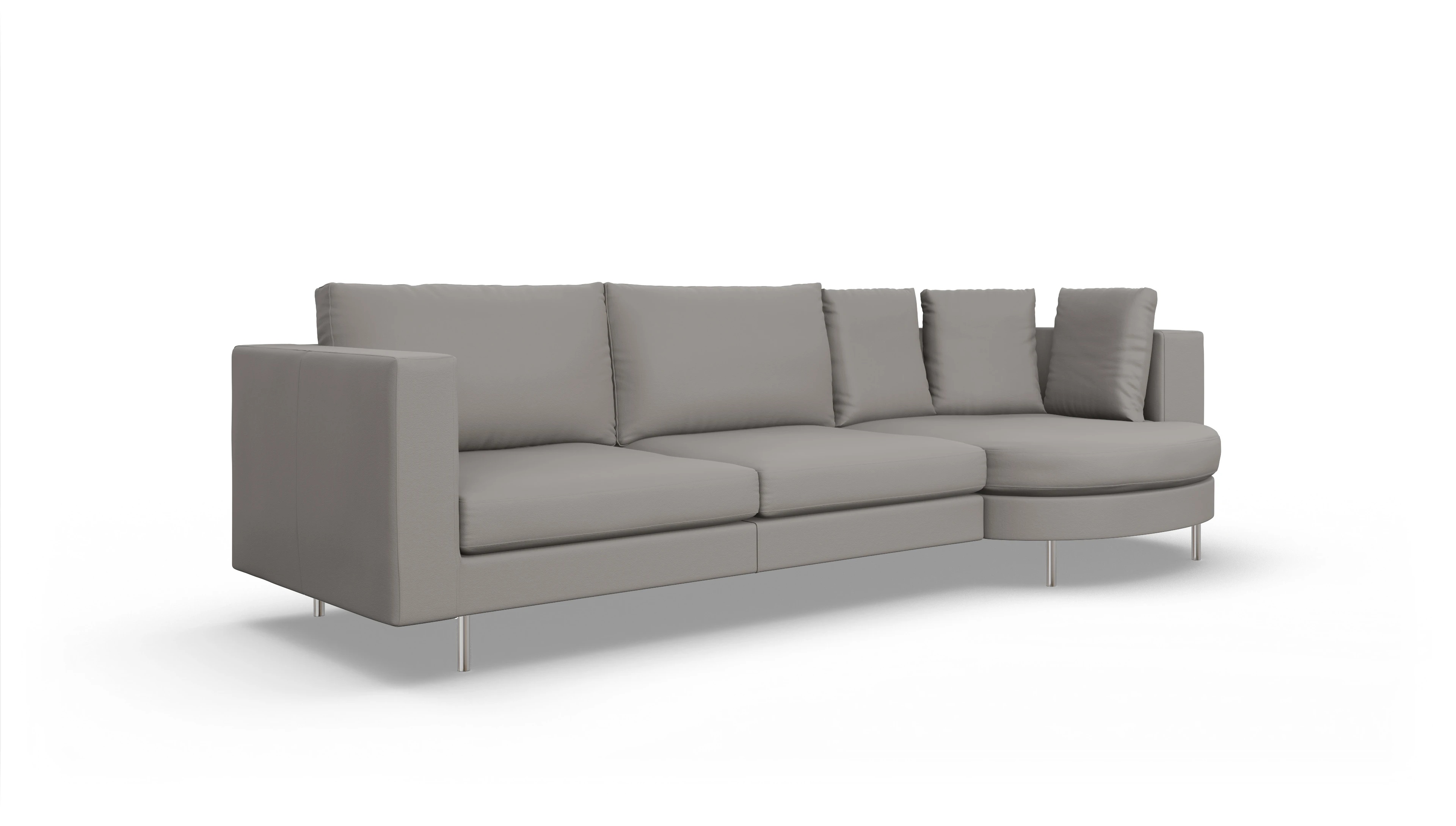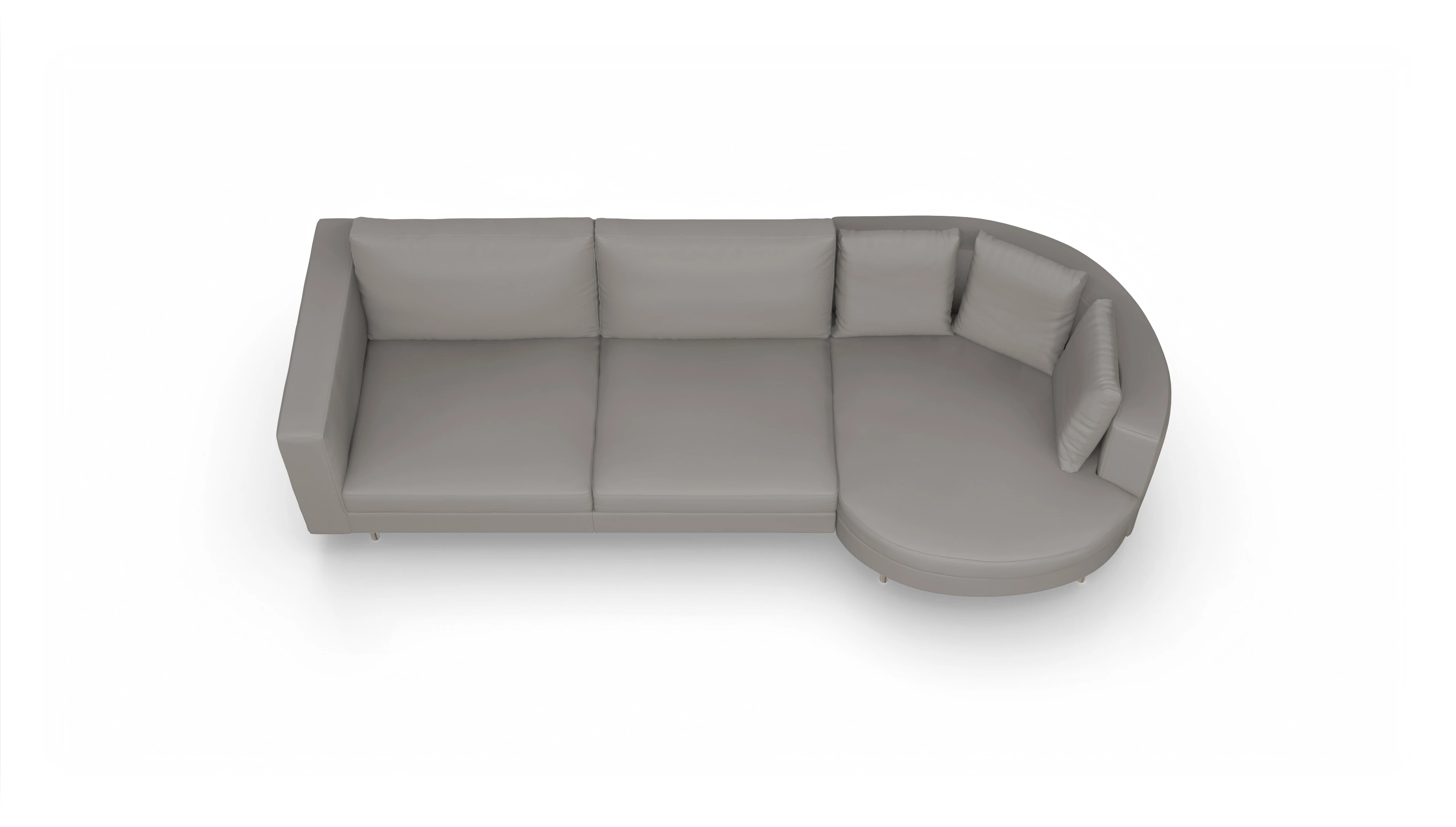 Das edle Semianilinleder bietet eine weiche, anschmiegsame Haptik, bewahrt die natürliche Struktur und ist gleichzeitig pflegeleicht sowie widerstandsfähig. Highlight des Sofas ist die großzügige, runde Récamiere, die eine einladende Lounge-Atmosphäre schafft und als stilvoller Blickfang überzeugt.