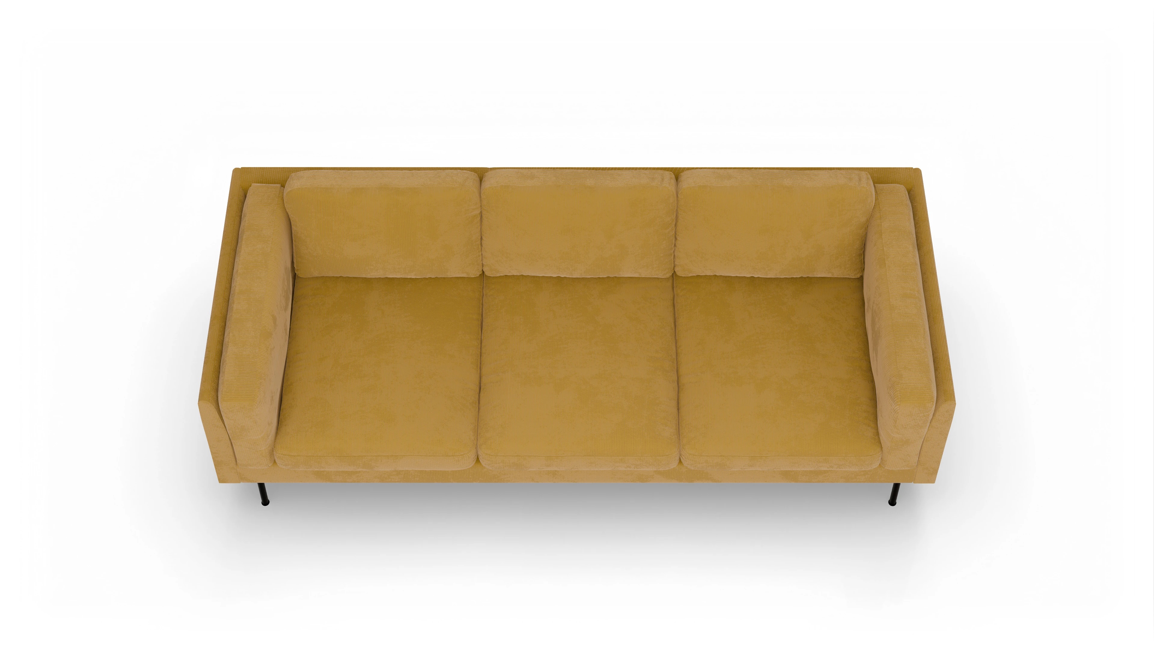 Schmale, schwarze Metallfüße, die nicht unter den Armlehnen, sondern unter dem Korpus angebracht sind, wirken interessant und verleihen dem Sofa Henriksen seine makellose Leichtigkeit. Die gemütlichen Armlehnkissen sorgen dafür, dass Sie sich in jeder Position auf Ihr Sofa setzen und trotzdem den vollen Komfort genießen können.