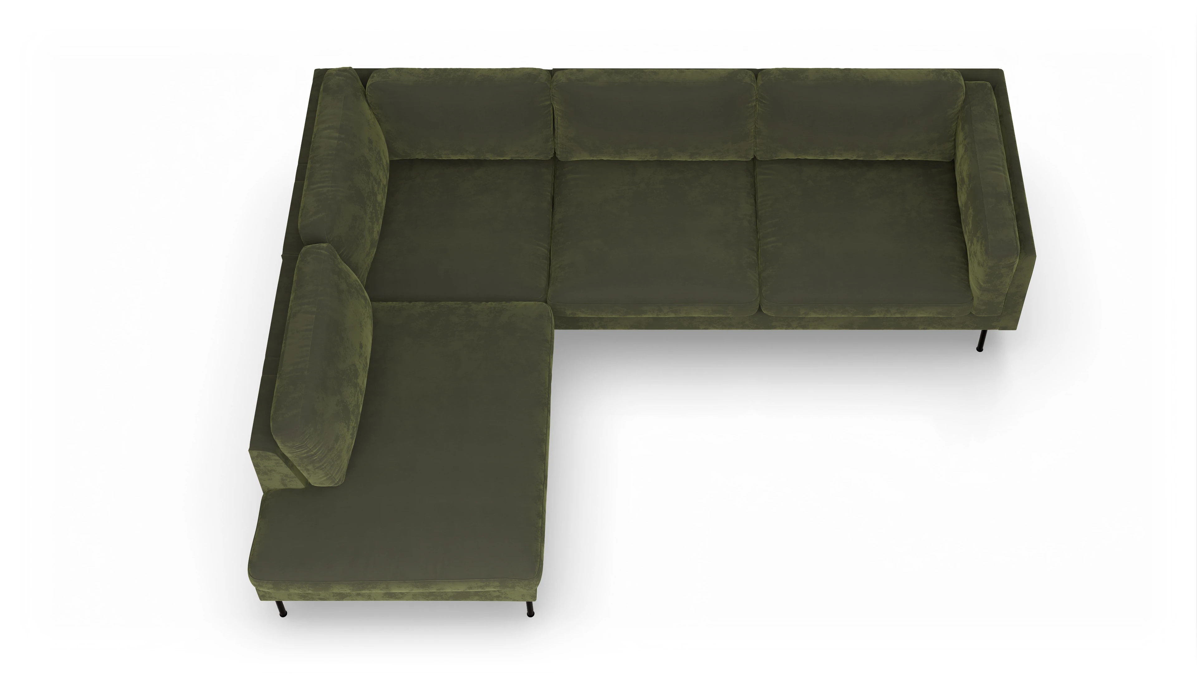 Schmale, schwarze Metallfüße, die nicht unter den Armlehnen, sondern unter dem Korpus angebracht sind, wirken interessant und verleihen dem Sofa Henriksen seine makellose Leichtigkeit. Die gemütlichen Armlehnkissen sorgen dafür, dass Sie sich in jeder Position auf Ihr Sofa setzen und trotzdem den vollen Komfort genießen können.