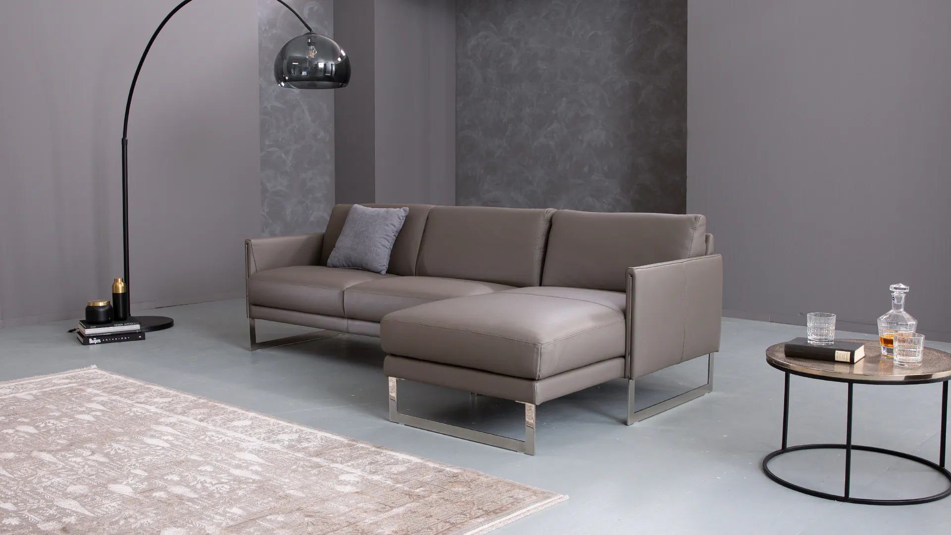 Zurückhaltend und dabei erfrischend modern: Das Ledersofa Nebbia zeigt Eleganz bis in das letzte Detail. Die geometrische, schmale Form und die chromfarbenen Kuvenfüße, die in die Armlehnen integriert sind, verleihen dem Modell einen einzigartigen Charme. Aufgrund seines zurückhaltenden Designs und seiner Leichtigkeit fügt sich das Sofa besonders gut in kleine Wohnräume ein. In Kombination mit einem passenden Sessel oder Hocker bietet es den Komfort einer einladenden Sitzgruppe.