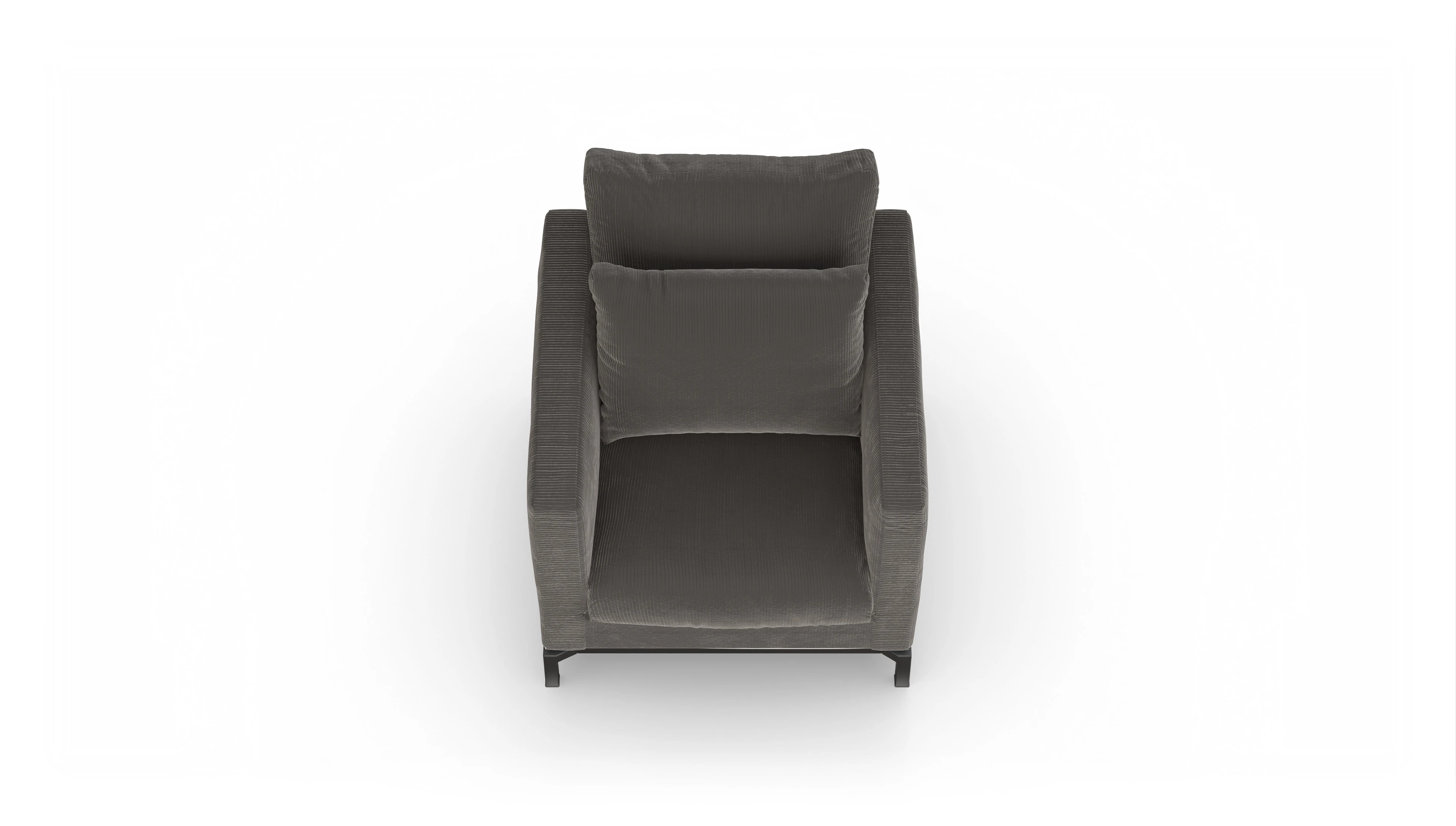 Der Designer-Sessel Fenice besticht durch ein klares, aber nicht zu strenges Design. Durch die losen Rückenkissen wird die geradlinige Form unterbrochen. Zusätzlich wird der "luftige" Eindruck durch den anthrazitfarbenen Stahlsockel unterstützt.