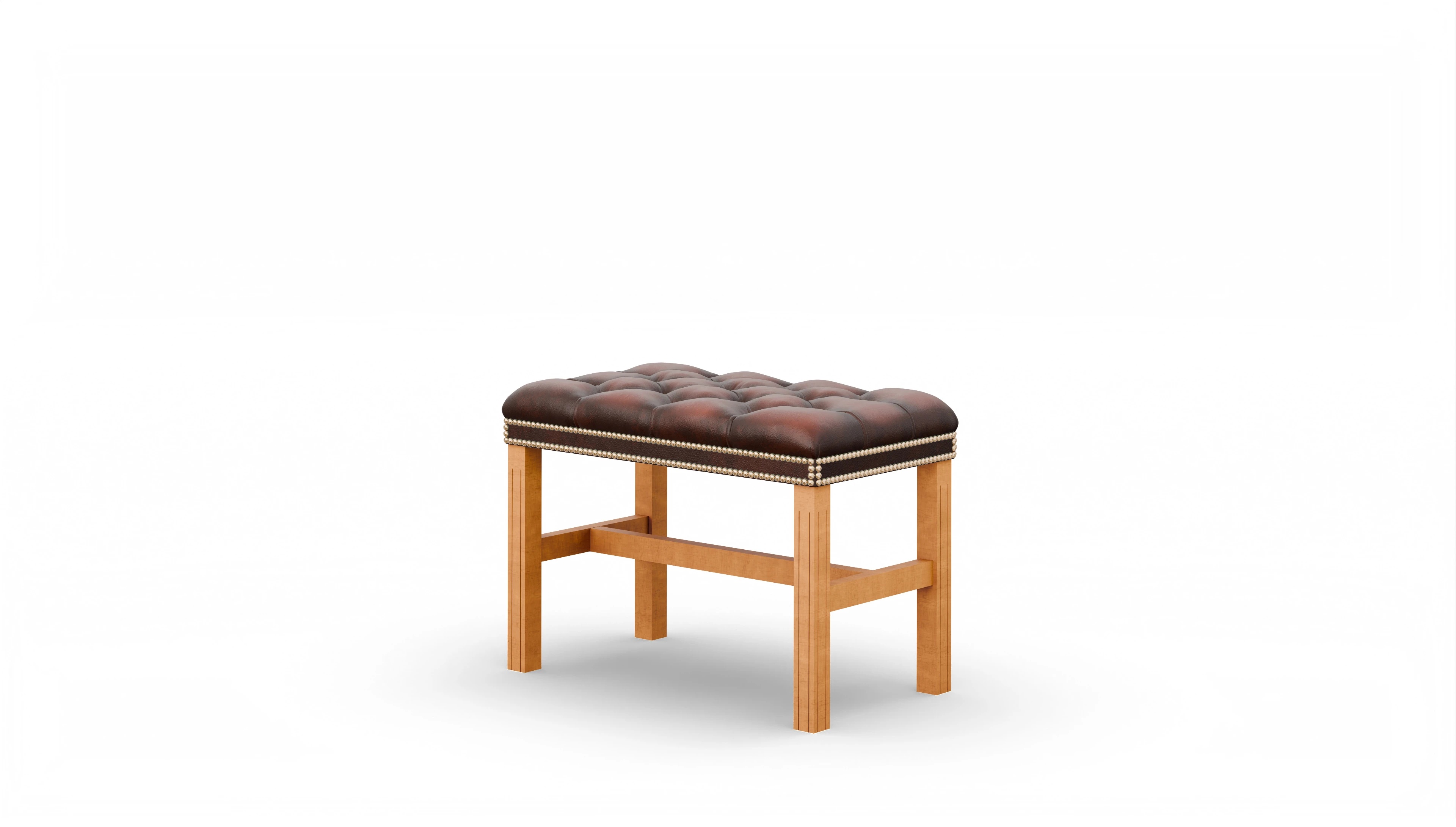 Dieser handgefertigte Hocker vereint langlebige Qualität mit zeitlosem Design. Das massive Holzgestell sorgt für Stabilität, während der hochwertige Lederbezug für eine elegante Optik und außergewöhnliche Langlebigkeit steht. Die aufwendig gearbeitete Chesterfield-Kapitonierung verleiht dem Möbelstück einen edlen Look, der perfekt zu klassischen und modernen Einrichtungen passt.