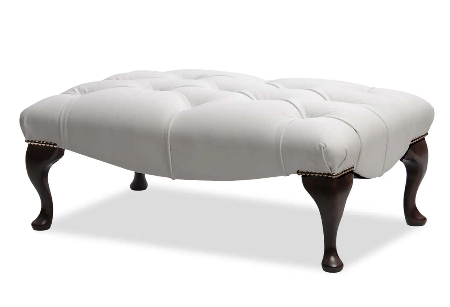 Dieser Hocker ist mit seiner kapitionierten Sitzfläche und handwerklich meisterhaft gearbeiteten Details ein echter Hingucker.