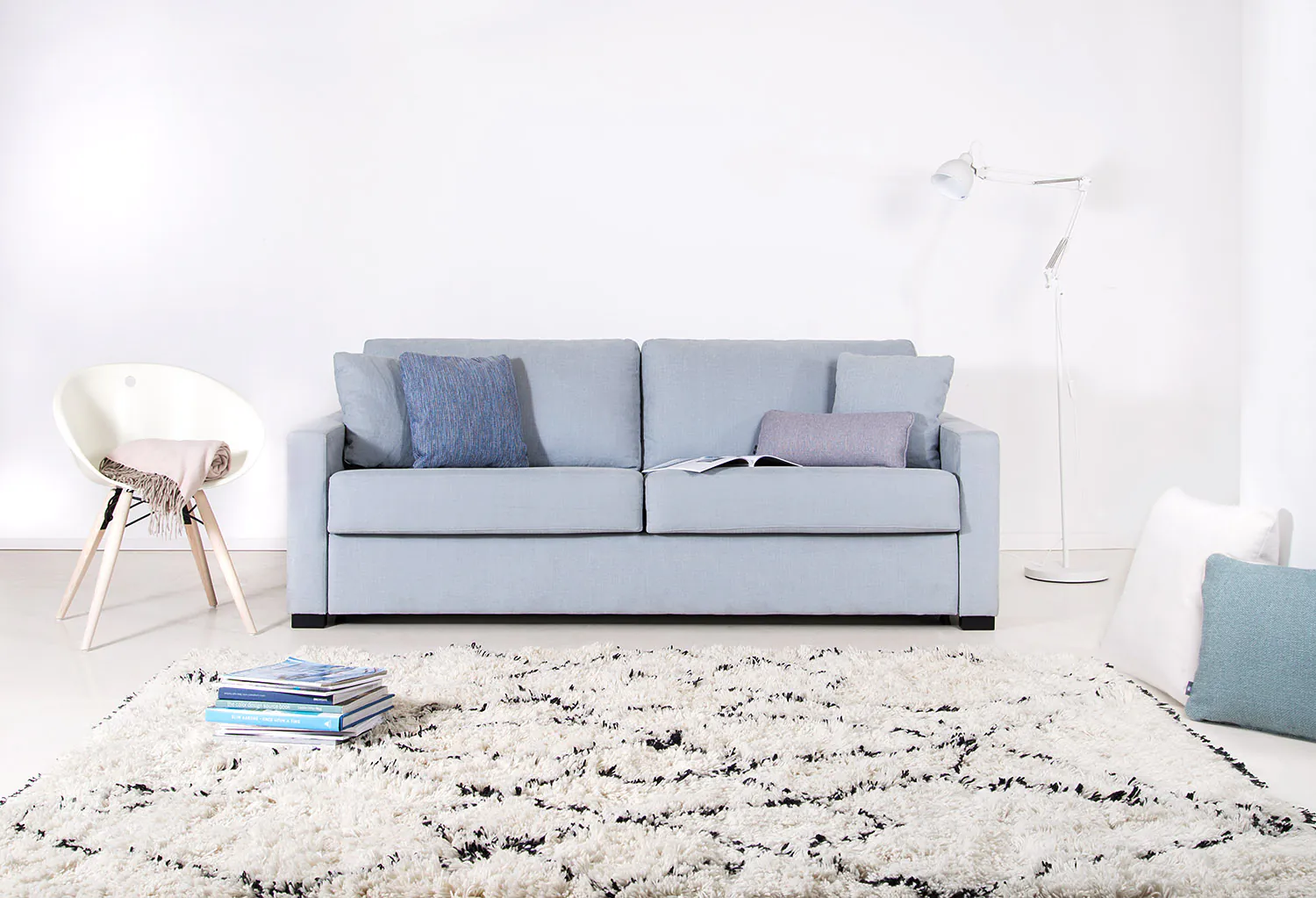 Dank des innovativen Designs und der kompakten Maße fügt sich dieses Schlafsofa harmonisch in jede Wohnumgebung ein. Die schmalen Armlehnen schaffen nicht nur eine moderne, leichte Optik, sondern maximieren auch den verfügbaren Platz. Somit ist unser Schlafsofa Karlstad ideal für kleine Wohnungen oder Räume mit begrenztem Platzangebot, ohne dass Sie auf unseren gewohnten Komfort verzichten müssen: Dank unseres hochwertigen 1-Hand Bettmechanismus lässt sich dieses genial reduzierte Designer-Sofa innerhalb weniger Sekunden in ein gemütliches Bett verwandeln, auf dem Ihre Gäste auch über mehrere Nächte hinweg entspannt schlafen können.