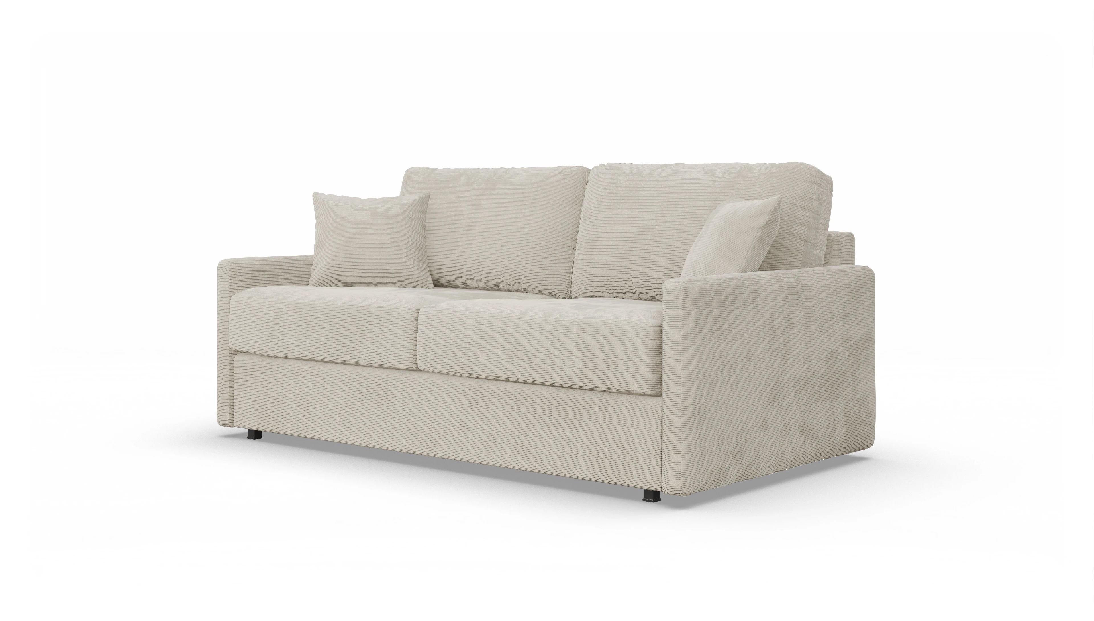 Dank des innovativen Designs und der kompakten Maße fügt sich dieses Schlafsofa harmonisch in jede Wohnumgebung ein. Die schmalen Armlehnen schaffen nicht nur eine moderne, leichte Optik, sondern maximieren auch den verfügbaren Platz. Somit ist unser Schlafsofa Karlstad ideal für kleine Wohnungen oder Räume mit begrenztem Platzangebot, ohne dass Sie auf unseren gewohnten Komfort verzichten müssen: Dank unseres hochwertigen 1-Hand Bettmechanismus lässt sich dieses genial reduzierte Designer-Sofa innerhalb weniger Sekunden in ein gemütliches Bett verwandeln, auf dem Ihre Gäste auch über mehrere Nächte hinweg entspannt schlafen können.